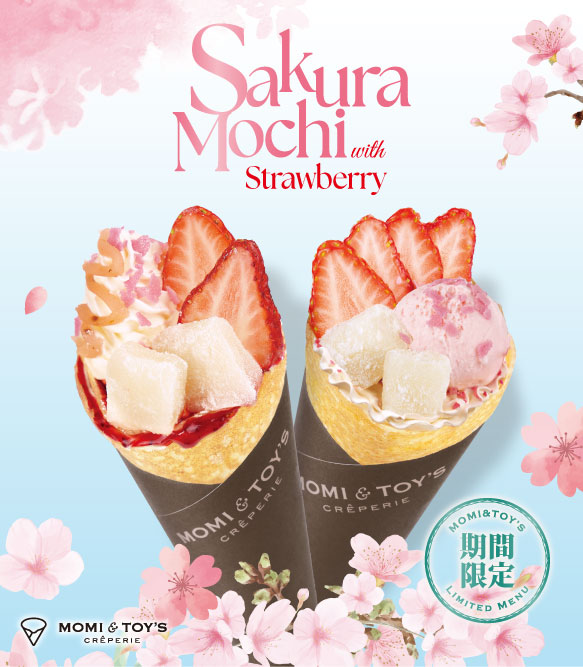 香り豊かなさくら餡とさくらアイスをもちもち食感の求肥とともに包み込み、トッピングにもさくらアイスやさくら色のフィアンティーヌを贅沢にあしらった、さくら尽くしの春限定クレープです。甘酸っぱい苺の風味がさくらの豊かな香りと重なり、ひと口ごとに春の味わいを楽しめる特別な一品に仕上げました。