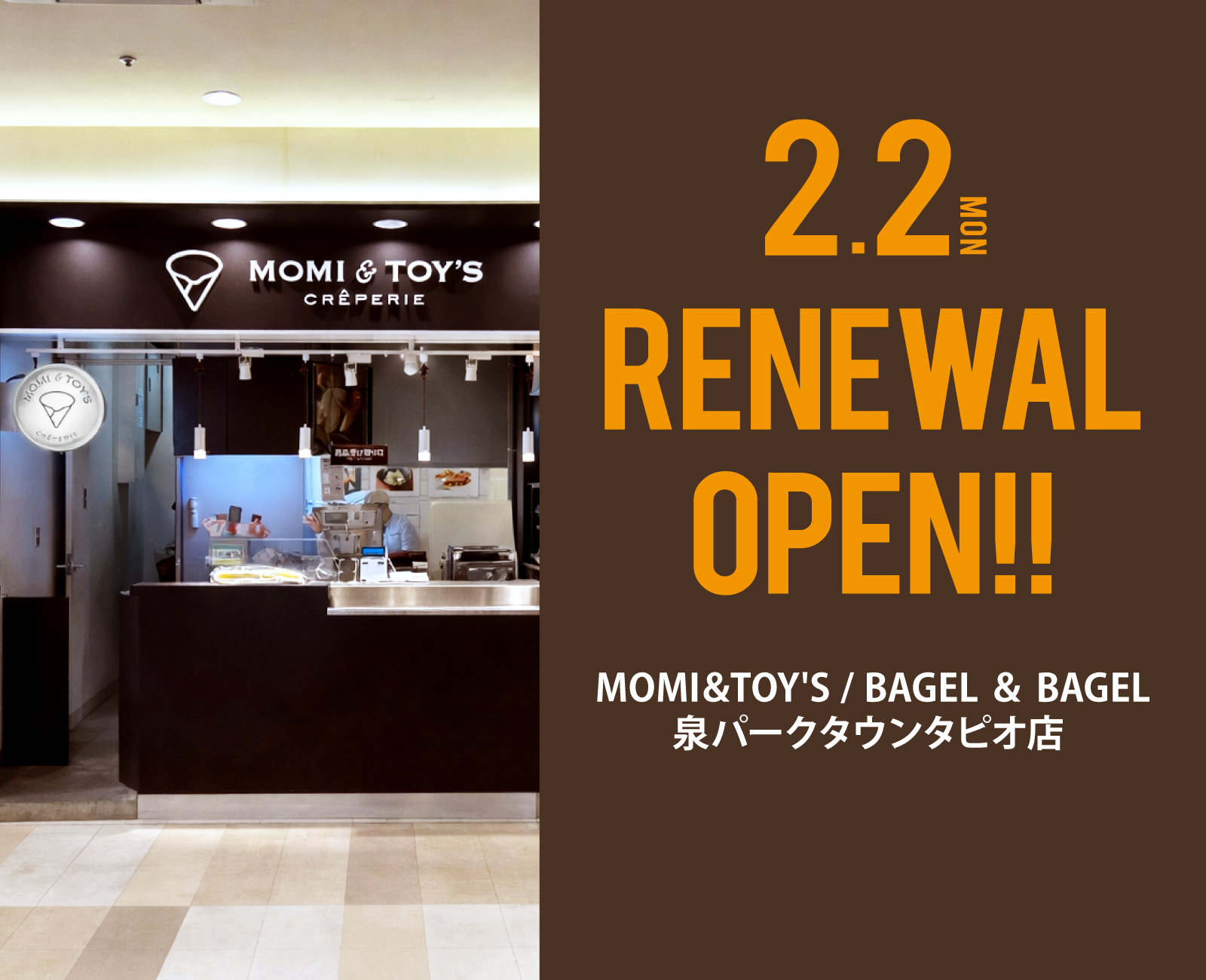 泉パークタウンタピオ店RENEWAL OPEN!!2026年2月2日(月)、泉パークタウンタピオ店がリニューアルオープンいたしました。 クレープに加...