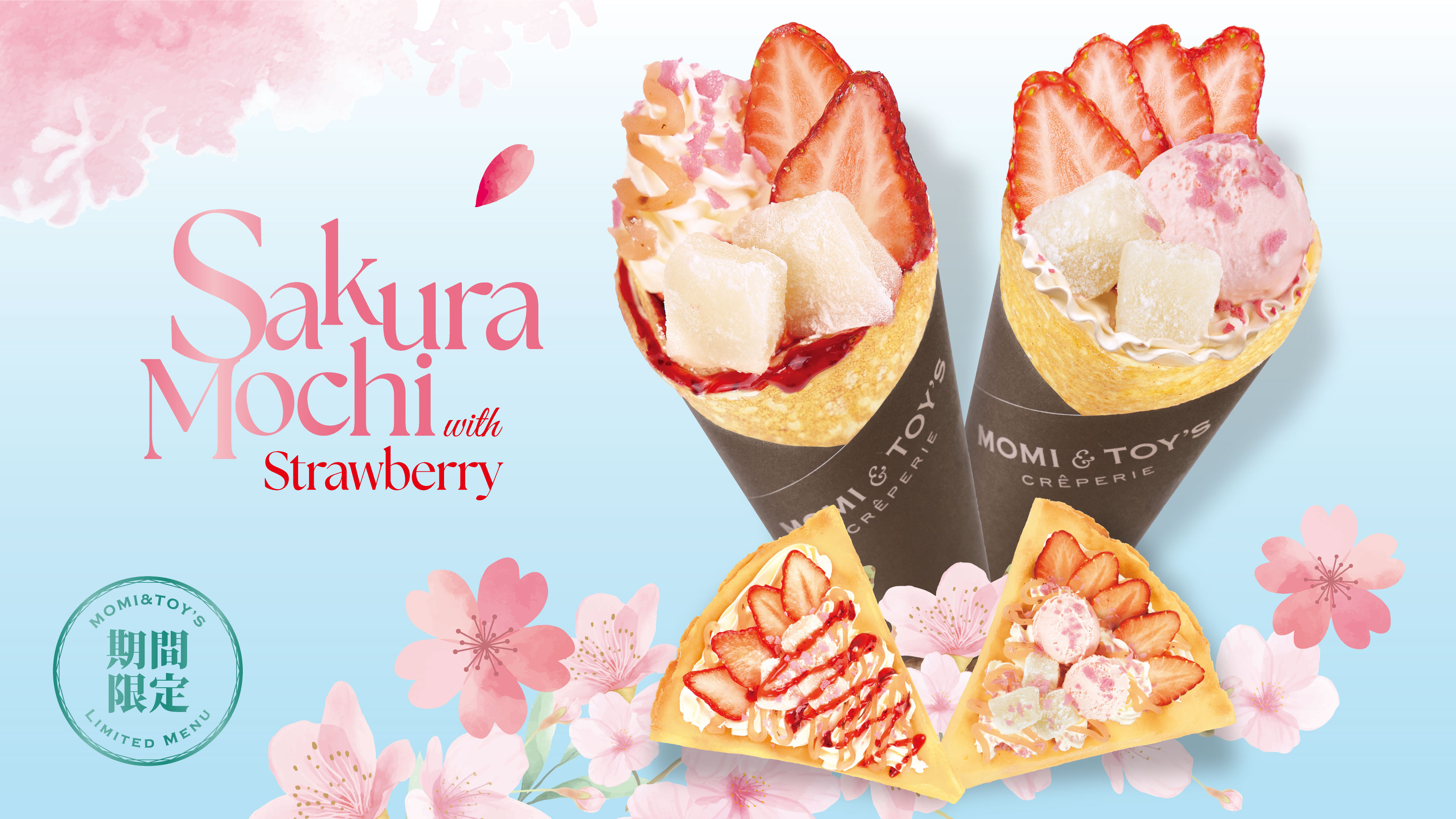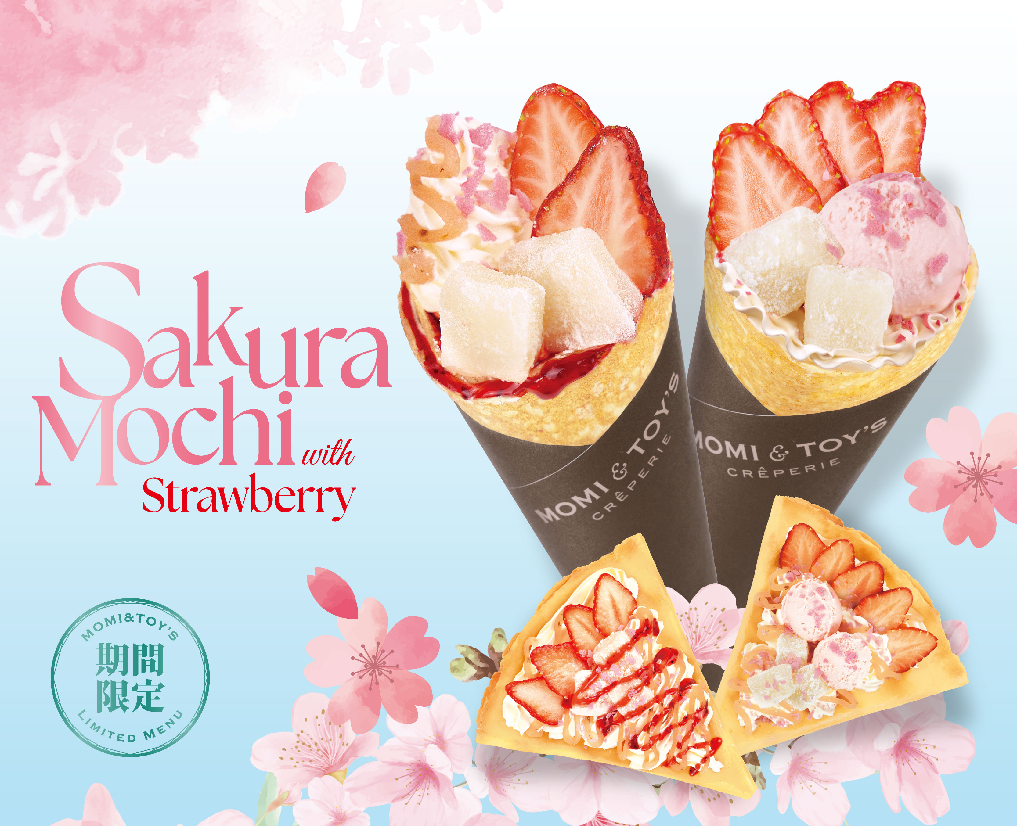 3月限定クレープのお知らせ【桜もち】いちごさくらもち 780円(税込) ふんわりとしたホイップクリームに、香り豊かなさくら餡やもちもち...